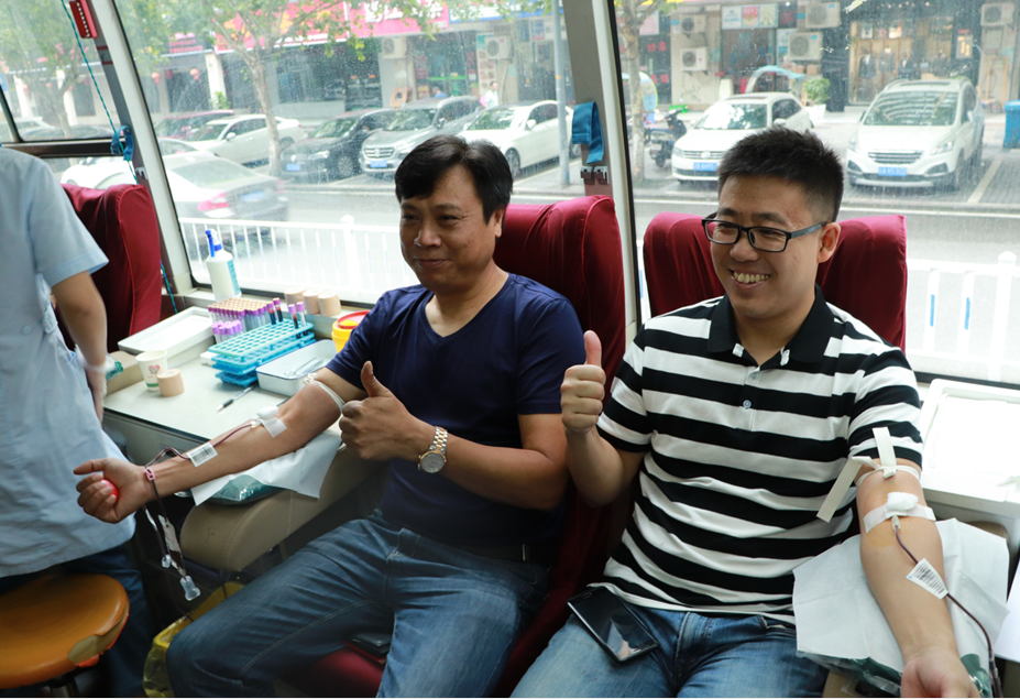当天早上,献血车刚来到市卫生健康委大楼前,党员干部就满怀爱心地排起了长队。献血队伍中,有许多熟悉的面孔,他们已经连续多年参加献血活动了。其中黄光谦献血14次,袁啸9次,杨荣刚7次,郑宝树7次,梅政成6次,李彤5次……刚献完血的政策法规处副处长程雪莲说:“我去年参与了《重庆市献血条例》的修订工作,知道无偿献血事关广大人民群众的切身利益,所以虽然一会儿还有会,但听说今天开展献血活动,我还是赶紧过来了。”只见程处长满头大汗,汗水已经打湿了她的衣衫。