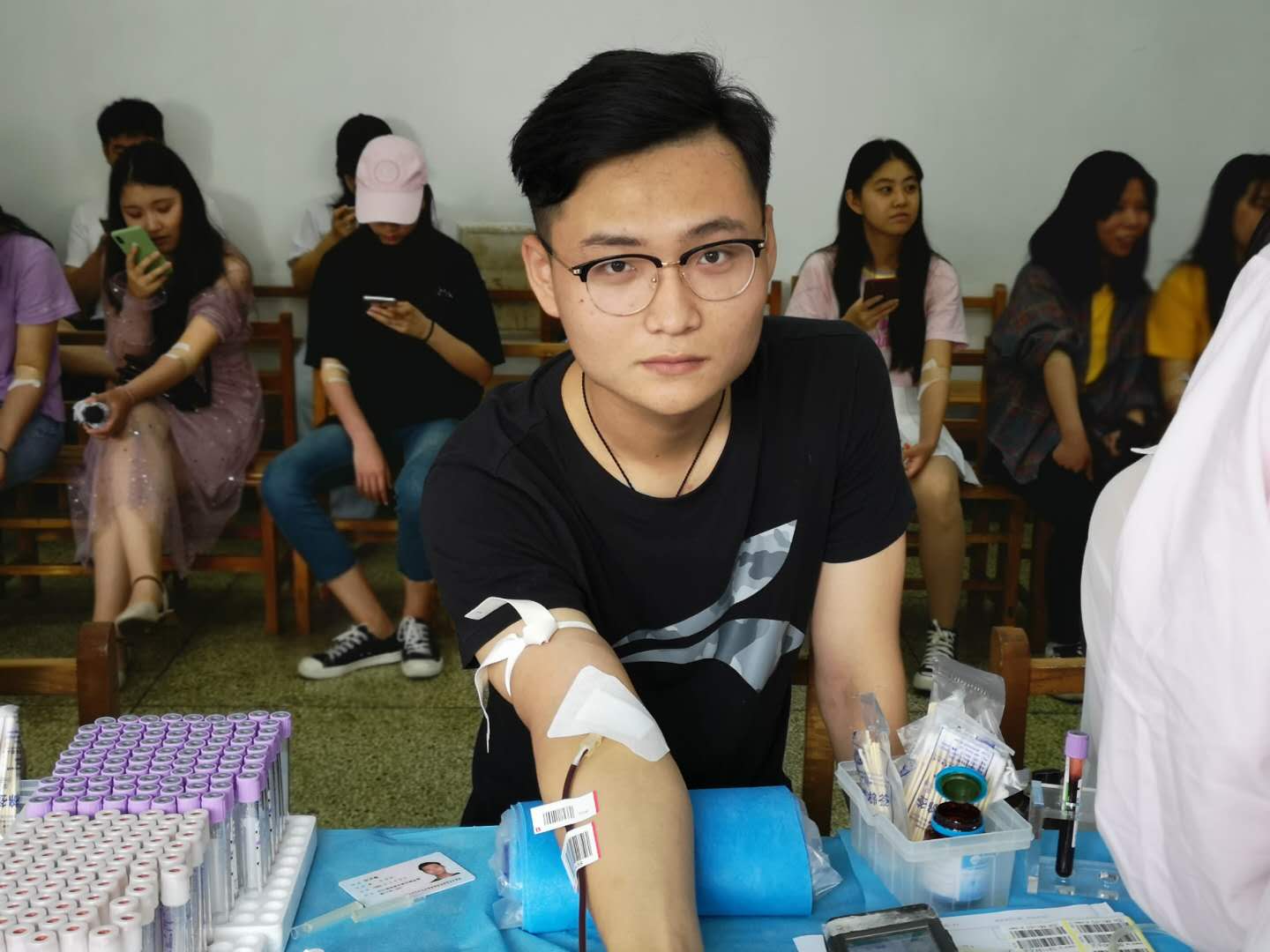 本次献血活动正值"七一"建党节来临之际,在献血的队伍中,有党员同志、有入党积极分子、还有普通学生,大家一起用别样的方式喜迎党的生日。