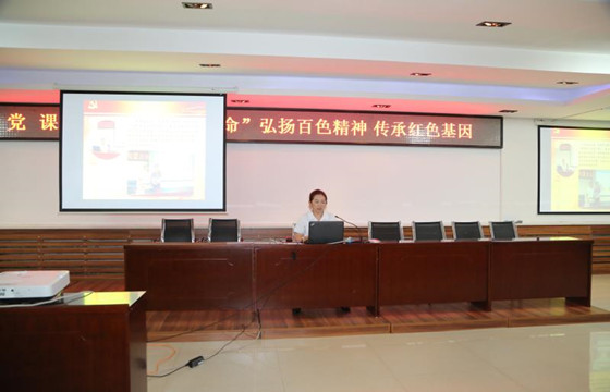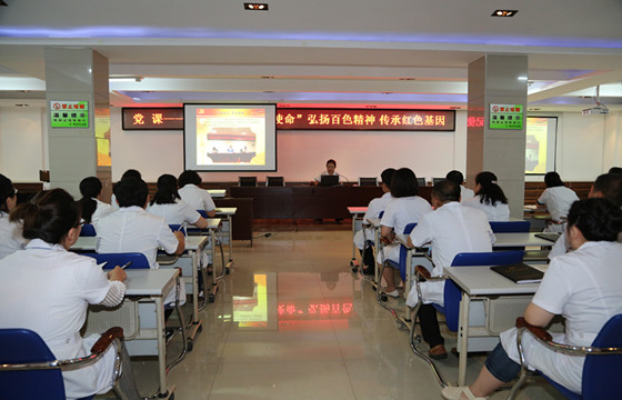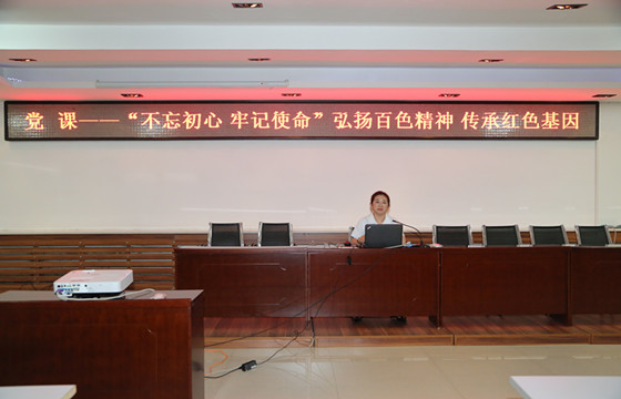 值此建党98周年之际,2019年7月1日下午,通辽市中心血站站长、书记金洁以《“不忘初心 牢记使命”——弘扬百色精神 传承红色基因》为题为全站党员干部职工讲了一堂生动的党课。