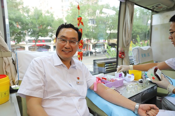 活动开始后,亚太大酒店党委书记、总经理邓定带头献血,在献血前体检时他说道:“无偿献血作为健康中国战略的重要组成部分,是社会文明进步的重要标志,也是我市巩固文明城市成果和创建国家卫生城市的重要内容。作为市政府办公室所属政务接待酒店,在中国共产党成立98周年之际,我们以不忘初心、牢记使命,无偿献血、奉献爱心为主题,开展无偿献血向党日献礼活动,就是教育激励广大党员始终牢记心系人民、全心全意为人民服务的初心和情怀,牢记为人民谋幸福、为民族谋复兴的光荣使命,希望唤起全社会对无偿献血事业的关注,鼓励更多的人加入到无偿献血队伍中,在全社会营造广泛支持无偿献血、积极参与无偿献血的良好氛围,为健康中国、美丽河北、幸福石家庄建设做一份贡献!”