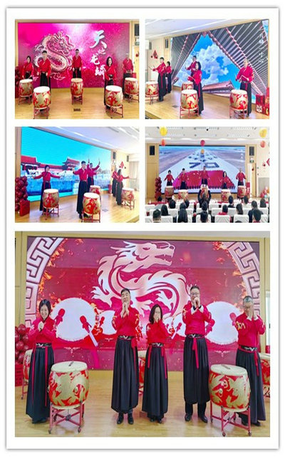 上图:中心领导班子成员表演中国鼓《天地龙鳞》
