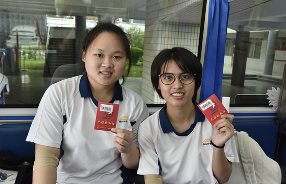 每年的6月10日,佛山市第二中学的高三学子们除了参加高中毕业典礼外,还有一个指定动作“献血”。同学们都笑称:同一天能拿到两个证书——毕业证书+献血证,开心又难忘。该校一直注重学生们的社会责任心的培养,每年都积极发动高三适龄学生参与献血活动。以前该校利用高三上学期期末考后寒假前的时间举行活动,后来考虑到让更多符合年龄的学生参与以及让学生们在轻松的心情下参与,学校就将毕业典礼日定为“无偿献血日”,从2013年起,6月10日已经自然而然成为二中和血站的“约会日”了。