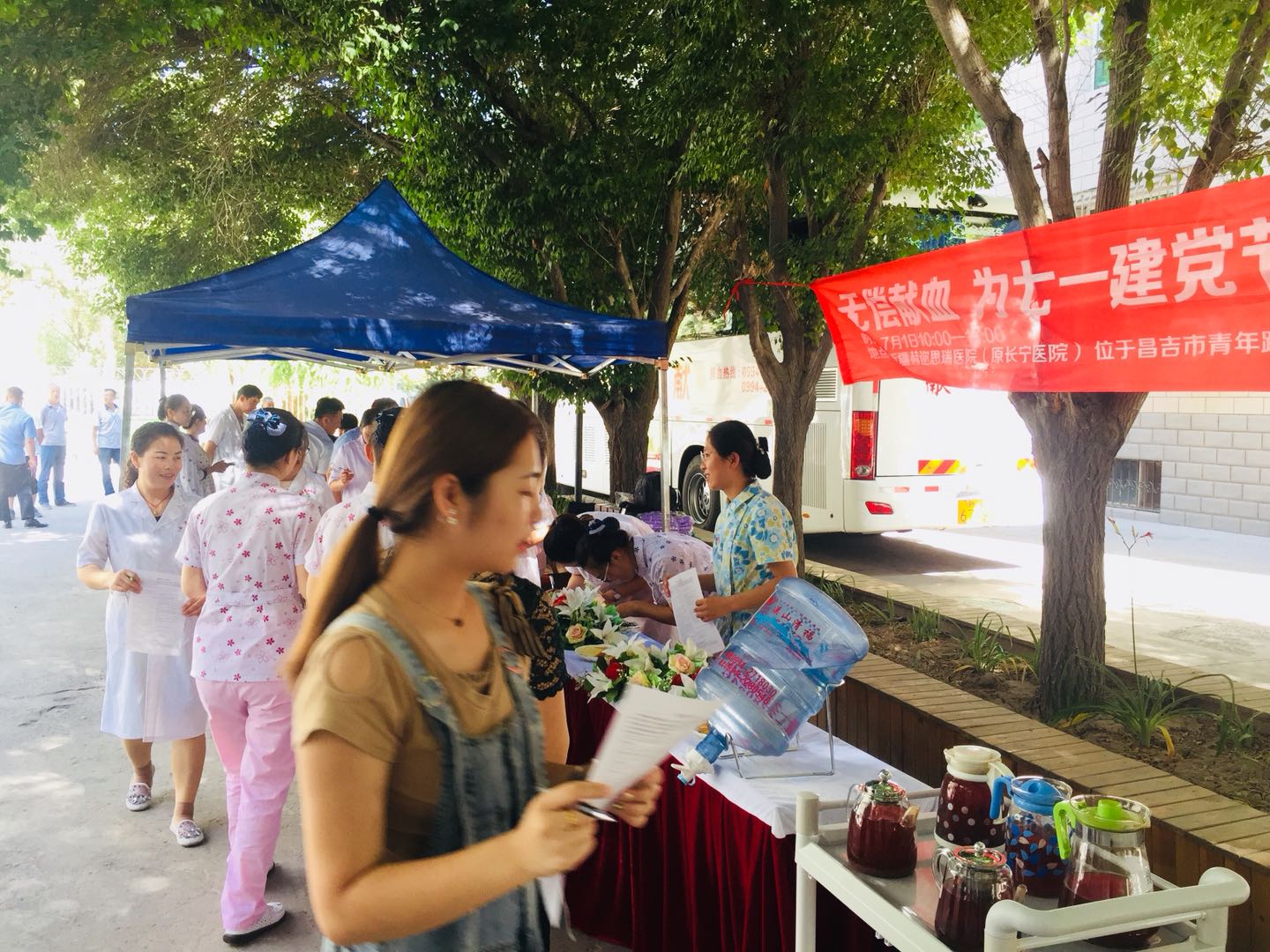 为庆祝建党九十八周年,7月1日,新疆赫迩思瑞医院联合昌吉州中心血站开展了“庆七一献热血,不忘初心跟党走”无偿献血活动。医院党支部书记李书峰在献血活动现场带领党员重温了入党誓词,医务工作者们以无偿献血这种特殊的方式,为保障我市医疗急救用血,保障人民群众身体健康和生命安全贡献一份力量,向建党九十八周年献礼。