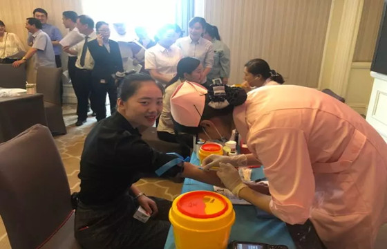 7月5日上午9时,我站走进安徽饭店,与安徽饭店联合开展“无偿献血用爱心为生命加油”主题活动。