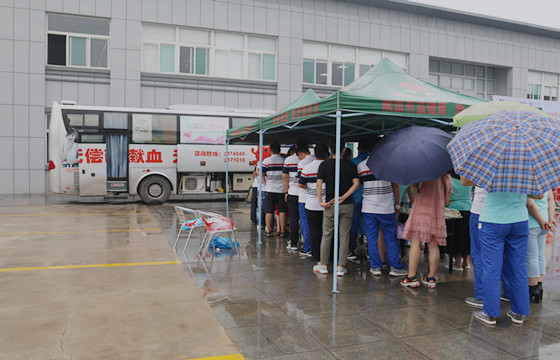 山东胜利生物工程有限公司冒雨组织献血