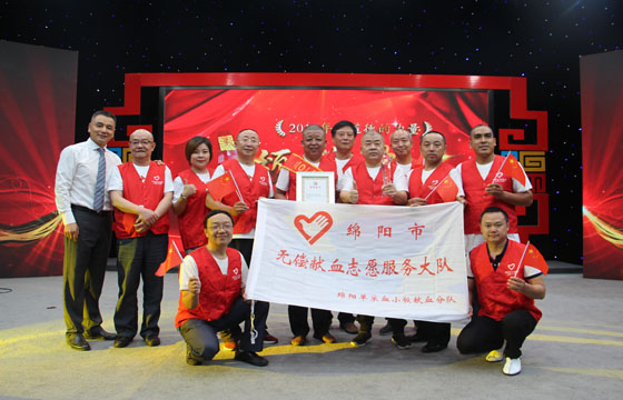 7月4日,在绵阳市精神文明建设委员会主办的2018年度“道德的力量”的颁奖典礼上,绵阳市无偿献血志愿服务大队单采血小板分队荣获“2018年度感动绵阳十大人物”称号。市委书记、市文明委第一主任刘超向分队队长刘洪颁发了荣誉证书和奖杯,充分体现了绵阳市委对无偿献血工作的重视与支持。