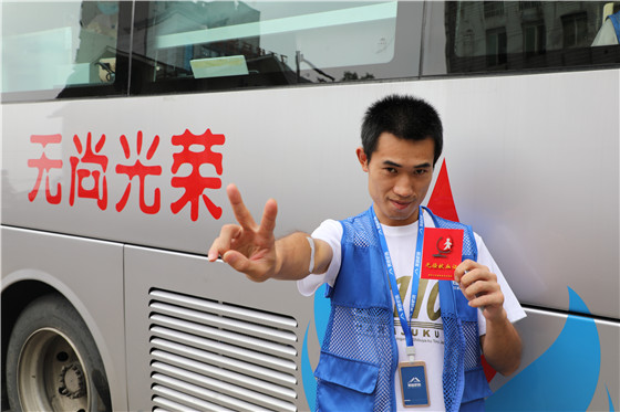 (志愿者为无偿献血者点赞授旗)