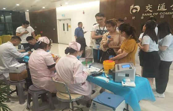 7月10日上午9时,安徽省血液中心走进中国交通银行安徽分行开展无偿献血公益活动。