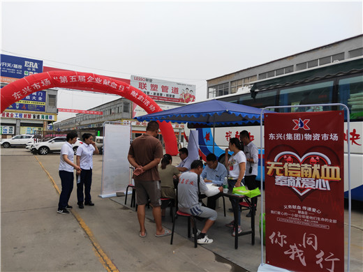 此次中心与东兴物资集团合作开展的活动,充分考虑了东兴市场远离市区中心,业主全年无休忙于生意,难以参与无偿献血的实际情况,为满足大家参与无偿献血事业、奉献爱心的愿望,设立企业“献血日”,组织现场团体献血,得到了集团和市场业主们的一致肯定和好评。