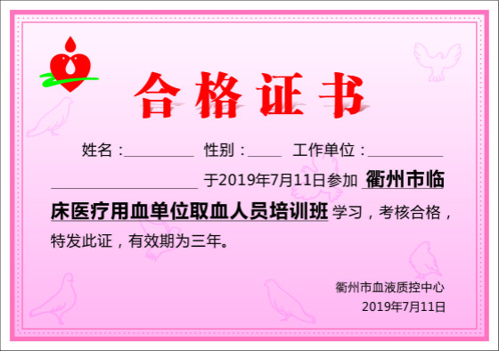 衢州市医疗机构取血人员培训班圆满完成