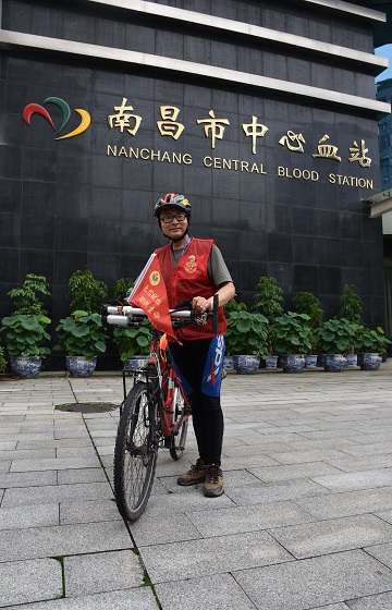此次爱心行动的发起人 “骑行侠”唐白良,57岁的他从2000年开始参加无偿献血,献血40余次,获得了2012-2013年全国无偿献血个人促进奖金奖。19年来他不仅坚持自己献血,还积极向身边亲友宣传无偿献血。热爱骑行的他,把无偿献血健康理念带到了广州、福建等全国各地。