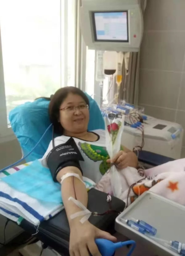 见到黄滢的时候,她正在接受医生的检查,准备第114次献血。说起她第一次献血的经历,黄滢还记忆犹新,2000年的一天,当时25岁的她带儿子去新华书店买书,无意中看到了无偿献血的宣传,那次她献出了200毫升的鲜血。“因为我们父亲是在医院工作,他常常教导我献血对人体没有什么损害。既然我合格,我就帮助他人吧,就抱着这种心理去献血了。”黄滢说道。