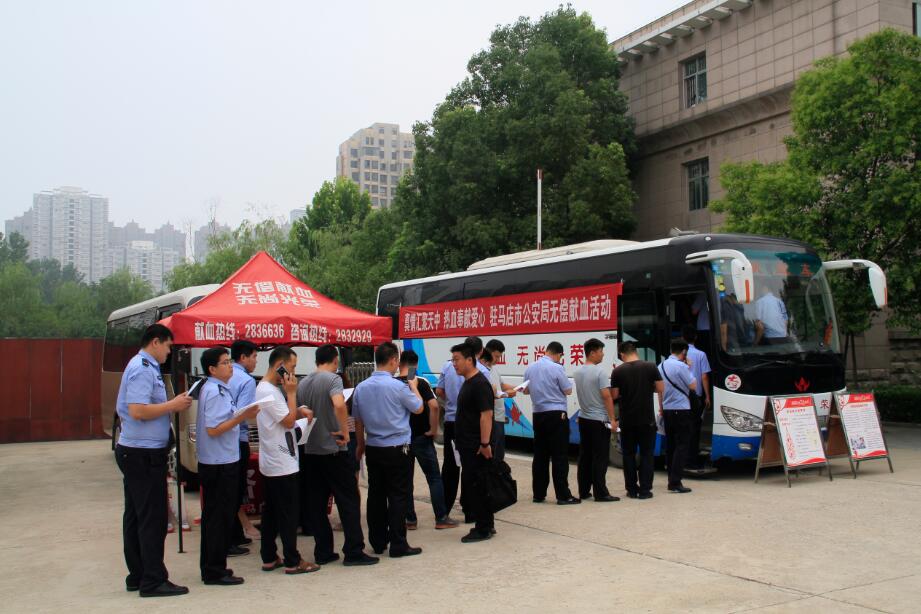 为响应无偿献血工作号召,弘扬人民警察心系人民、乐于奉献、关爱他人的优良传统,展现公安民警的责任担当和良好形象。7月18日上午,驻马店市公安局在市局北门组织开展无偿献血活动,市辖区广大民警、公安系统职工积极报名参加活动,以实际行动向社会奉献爱心。