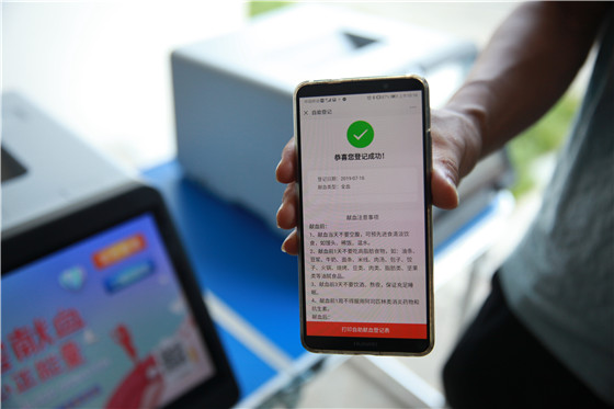 活动当天,大家在市中心血站工作人员的引导下,利用身份证和手机进行献血登记,献血者无须再手工填写项目繁多的表格,大大缩短了献血者的等候时间。