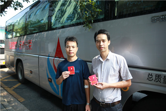 张涛和欧志华都是第一次参与无偿献血,欧志华表示,虽然第一次献血有些紧张,当想到能为需要的人奉献自己的一份力量,一切就是值得的。“很高兴参与到无偿献血中来,为挽救生命尽一份自己的力量。”张涛虽是第一次献血,但他显得很放松,拿到献血证还邀约了身旁的同事为他们拍照留念。
