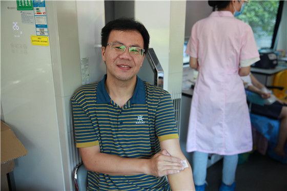 当天,采血车上最活跃的献血者是肖军。肖军告诉工作人员,这已经是自己第十次献血了,前不久还拿到了无偿献血奉献奖证书,这是对自我的一种精神上肯定和激励。在他看来,坚持无偿献血是一件美好的事情,也是自身健康的一种体现。