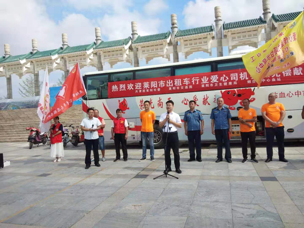 7月18日上午,由烟台市中心血站、共青团莱阳市委、莱阳市卫生健康局、莱阳市交通局联合发起组织莱阳市百位出租车司机开展无偿献血活动,该活动于上午9时在莱阳五龙广场启动,现场有百名出租车师傅参加启动仪式,共青团莱阳市委、莱阳市交通局、莱阳市卫生健康局领导及莱阳市春雨志愿服务中心理事长于文强和莱阳“献血大王”李升亭出席活动并讲话,为全市出租车司机的大爱无疆,奉献热血给予了极高的褒奖和点赞,此次无偿献血活动,共83人成功捐献热血29500毫升。