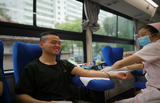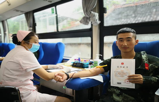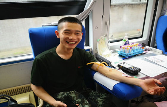 体检合格的官兵们愉快地走上采血车,我捐献400、我300毫升,爱心充满了采血车,流淌的都是真情与奉献,他们用实际行动诠释了警民之间血浓于水的亲情和担当。