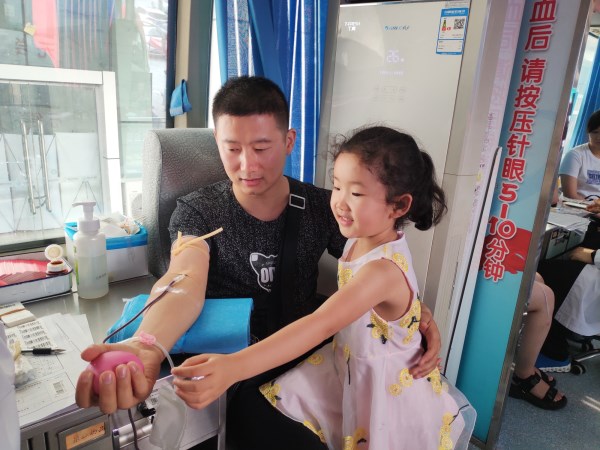陈燕龙来自脑病康复科,献血当天正值休班,他专程带女儿一起来到医院,自己一边献血一边为女儿讲解献血知识,并叮嘱女儿长大后也要参加无偿献血!“我希望孩子能成长为一个有爱心的人,所以特意带她来,让她近距离接触献血,明白献血的意义。”陈燕龙说。