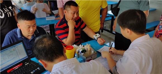 通讯员(李智宏)7月23日,一大早,郴州市北湖区增福街道办事处的操场上早已挤满了附近的居民,当天是街道开展无偿献血活动的日子。