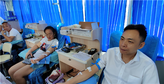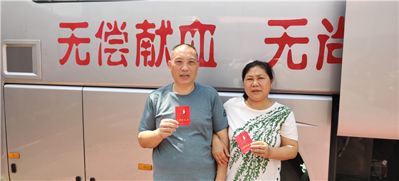 (黄水保和佐细花夫妇共同参加无偿献血)