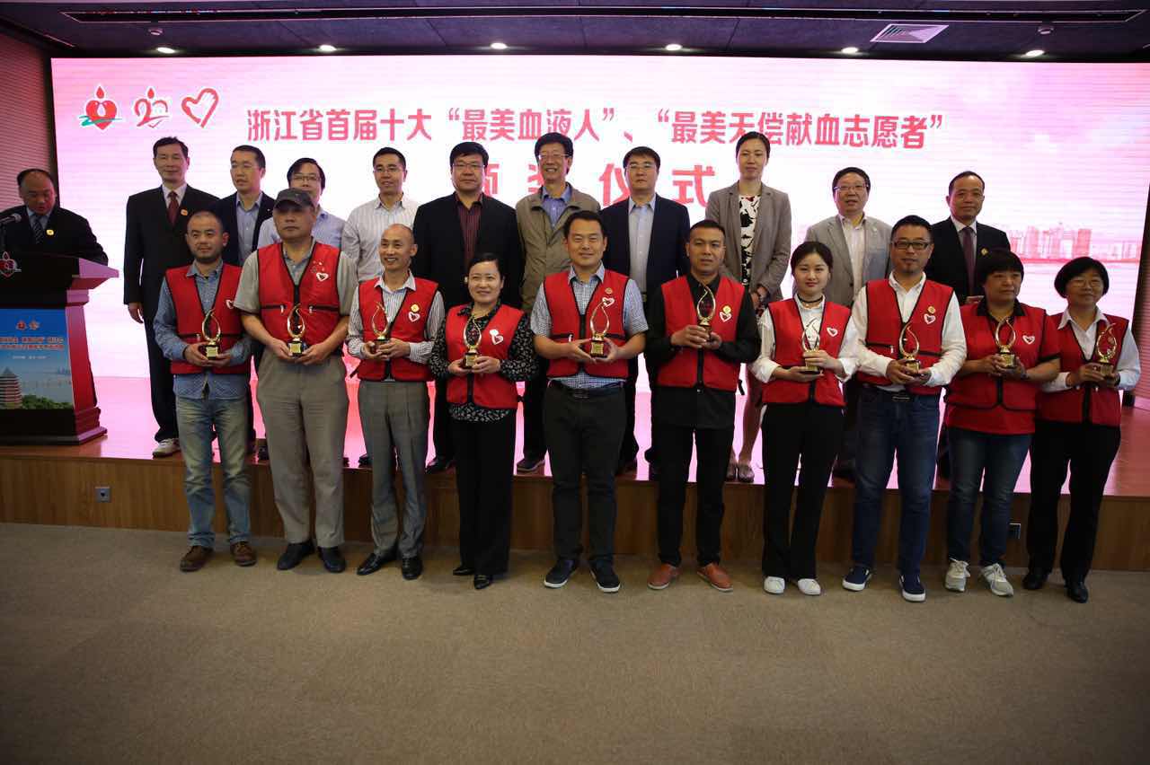 图为李金宝获评浙江省无偿献血最美志愿者(前排左边第5个)