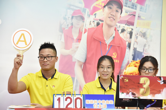 此次知识竞赛活动试题以“学习强国”的题目为主,涵盖《中国共产党章》、《宪法》修正案、《习近平总书记系列讲话读本》、《中国共产党纪律处分条例》以及党的十九大精神等方面内容,分别按小试身手必答题、手急眼快抢答题、胆大心细风险题、移花接木转答题、一决高下附加题五个环节进行。各代表队赛前做了充分准备,现场气氛热烈。经过激烈的角逐,最终南海血站党支部凭借扎实的理论功底,获得本次比赛第一名,三水区血站、市血站检验支部分别获得第二、第三名。顺德血站党支部、高明血站党支部、市血站行政支部、采血支部分别获优胜奖。