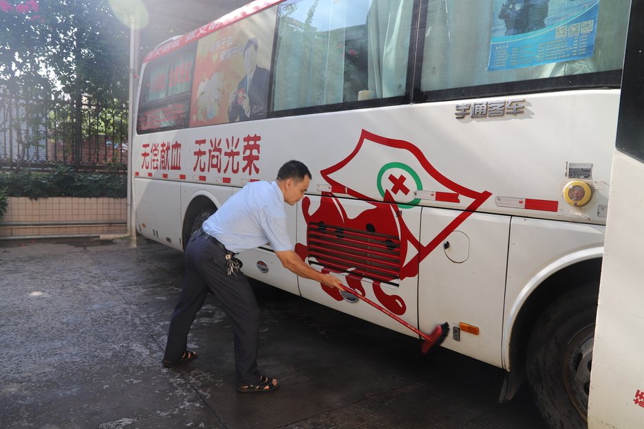 工作兢兢业业、勤勤恳恳是同车的医生护士们对司机们的评价。司机们总是早出晚归,每天第一个到达血站,发动好车,随时出发。在街头,献血车刚刚停好,司机熟练地开始搭棚、摆放物品、准备宣传资料,等待第一个献血者的到来。就算采血活动进行到很晚,司机们也会将一切收拾好再回家,二十年来始终如初。下午5时许,献血车在收获了数十人奉献出来的爱心与热血之后,平安返回血站!在别人眼里,这是他们一天工作的结束,但在司机看来,这只是新的一天工作的开始,因为明天一早献血车又要奔赴边远乡镇采血,所以他们回到血站后,认认真真把献血车彻底清洗一遍,仔细检查车况,确保车辆和采血工作的正常运行,为献血者营造一个舒适的献血环境。