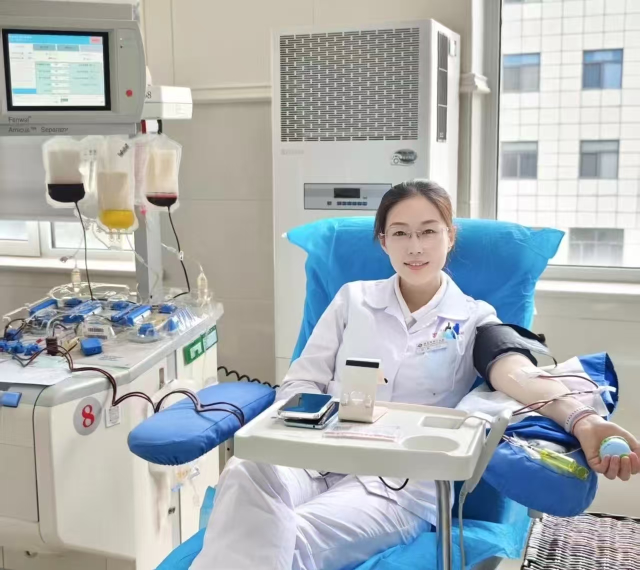 从此后,每当AB型血小板供应紧张之时,作为血站中稀缺的AB型献血者之一,我总会自觉地响应这份召唤。血小板保存期限仅有五天,无法大量储存,每一次的紧急调用都是真正的“紧急呼叫”。在血站工作多年,我早已习惯这样的节奏。每当完成血小板捐赠,收到“血液已发往临床”的短信,我总会想到那些血液在陌生人血管中流淌,也许是在城市的另一端,拯救了一位产妇的生命,让一名病童得以继续化疗,又或者使一位老人平稳度过了手术难关……这便是我献血后立刻返回岗位的动力所在。