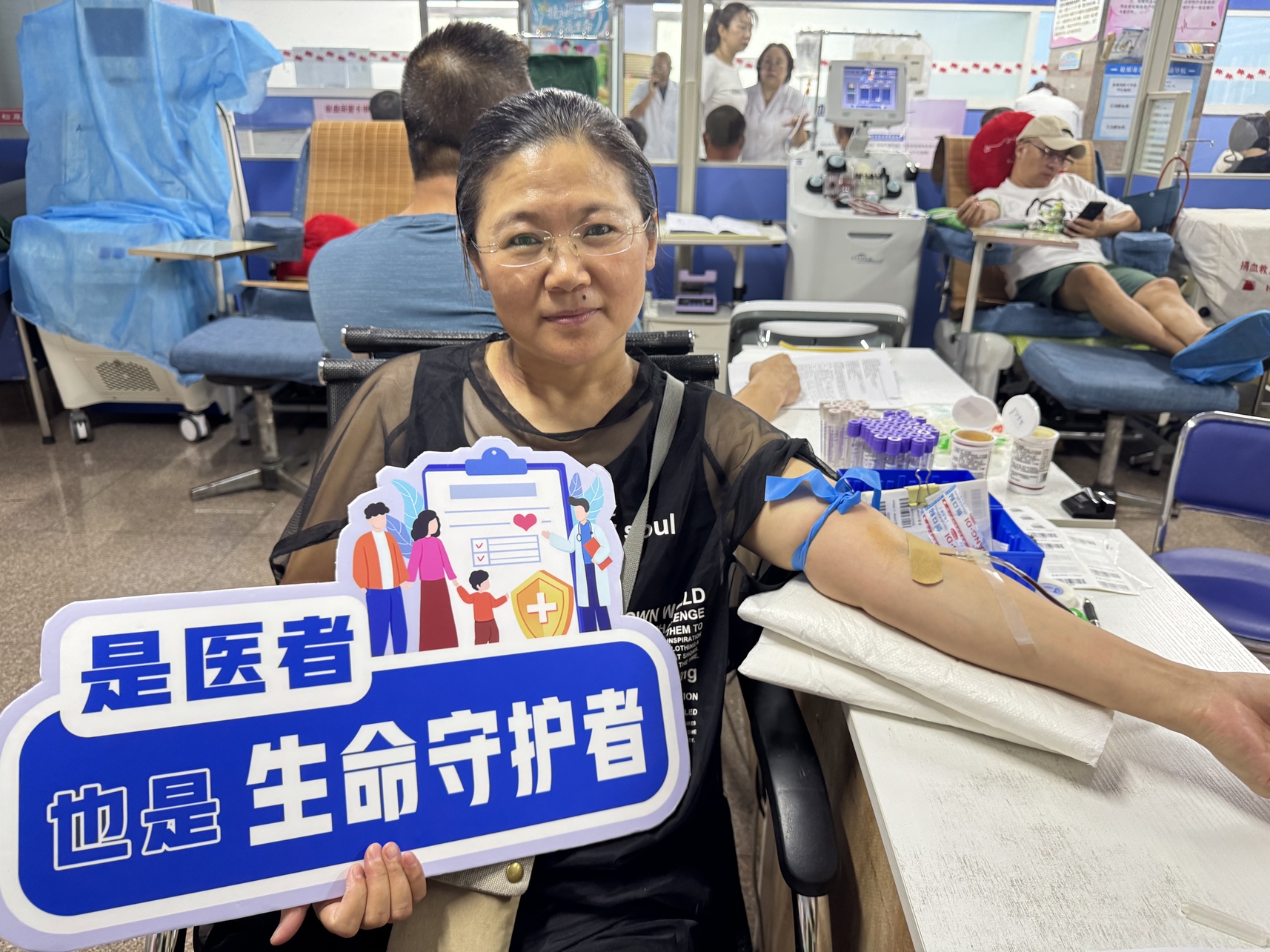 透析科的侯岩是无偿献血队伍中的“老熟人”。当天,她在医院抽出间隙穿着工作服匆匆赶来。“患者等着我呢,献完血得赶紧回去。”这是她第四次参与无偿献血,累计献血量1000毫升。看着鲜红的血液缓缓流入血袋,侯岩的眼神格外坚定:“咱们天天跟患者打交道,最清楚血液对生命的意义。能通过这种方式帮到别人,再忙也值得。”献完血后,她稍作休息便赶回医院,继续投入到透析患者的诊疗工作中。