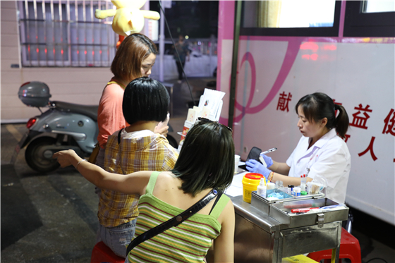 当晚,电影放映活动一直持续到九点多,共有6人参加无偿献血,奉献出2400毫升血液。