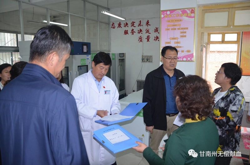 甘肃省卫生健康委应急办副主任王之虎、省血液中心副主任张支凤、省紧急医疗救援中心副主任肖文、省血液中心副主任李永铭、甘南州干部保健局局长李盛森、省血液中心办公室主任常群英一行5人专家组对我站“一会一节”期间血液保障工作进行了督导检查。
