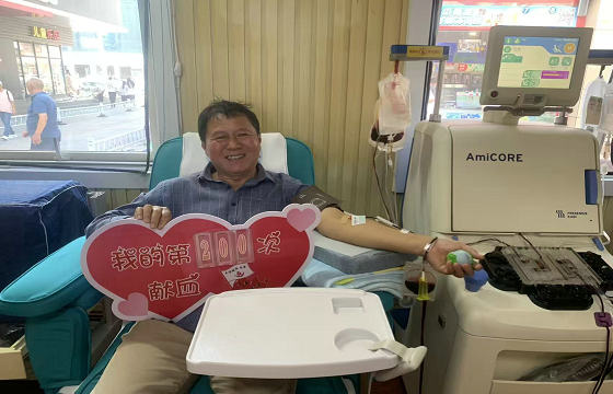 在城市的车水马龙间,有这样一位默默奉献的英雄,他以自己的热血,绘就了一幅关爱生命的壮丽画卷——截至今日,他已无偿捐献血小板达200次。