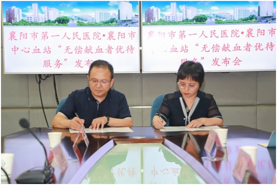 8月29日下午,襄阳市第一人民医院与襄阳市中心血站正式签订《无偿献血者优待服务共建书》,标志着该市无偿献血者在就医方面将享受更多便利与实惠。湖北省卫健委血液管理中心、襄阳市卫健委等相关单位负责人出席签约仪式。