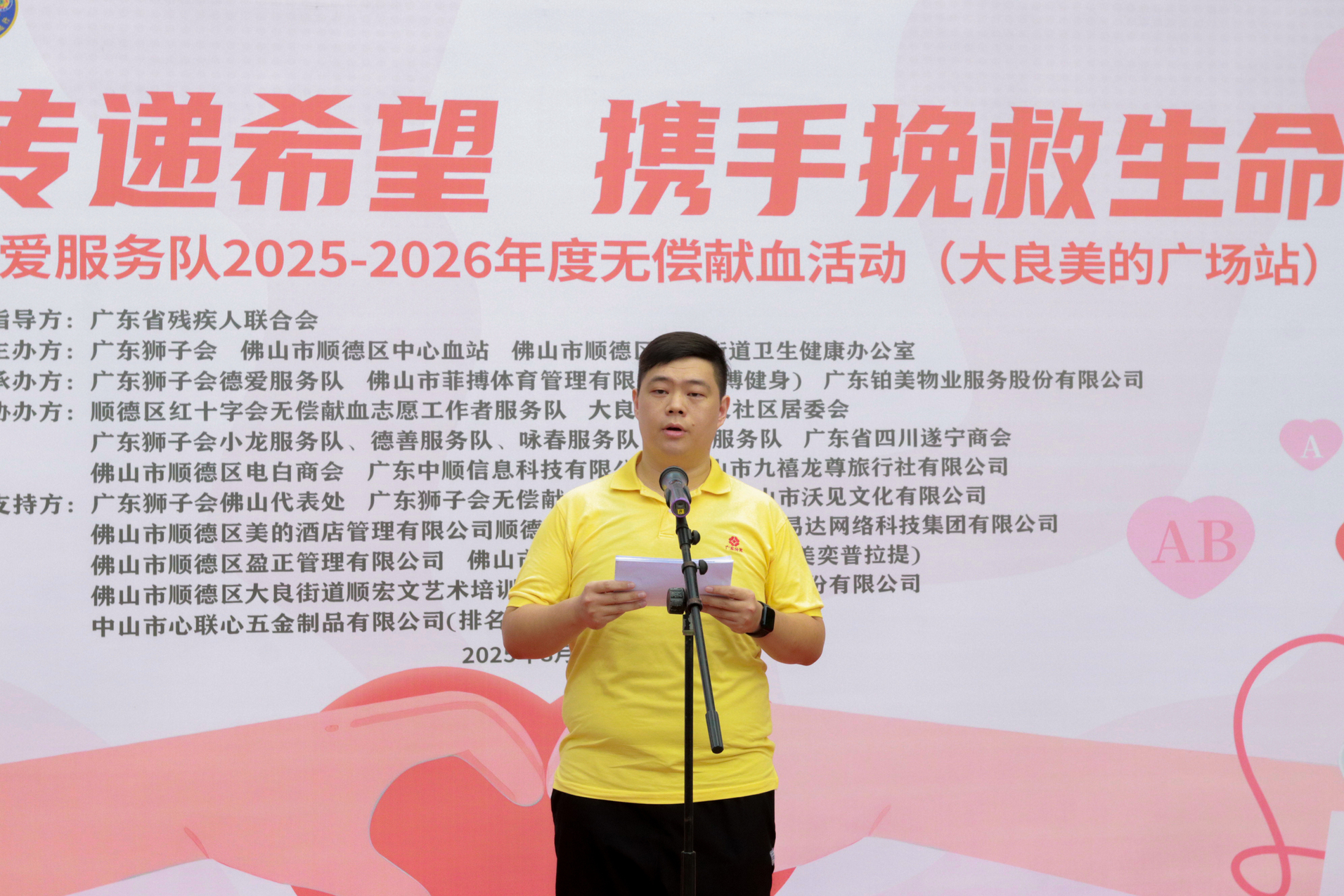 活动伊始,广东狮子会领导与顺德区中心血站领导相继上台致辞。他们深情讲述了血液对于生命的重要意义,在急诊室的紧急抢救中,在手术台的生死博弈里,在血液病患者的漫长等待中,每一袋血液都如同“生命的礼物”,不分种族、无关贫富,传递着人与人之间最本真的善意。他们呼吁更多人加入无偿献血队伍,捐献可再生的血液,挽救不可重来的生命,用实际行动为他人的生命续航,成为陌生同胞的 “救命恩人”。