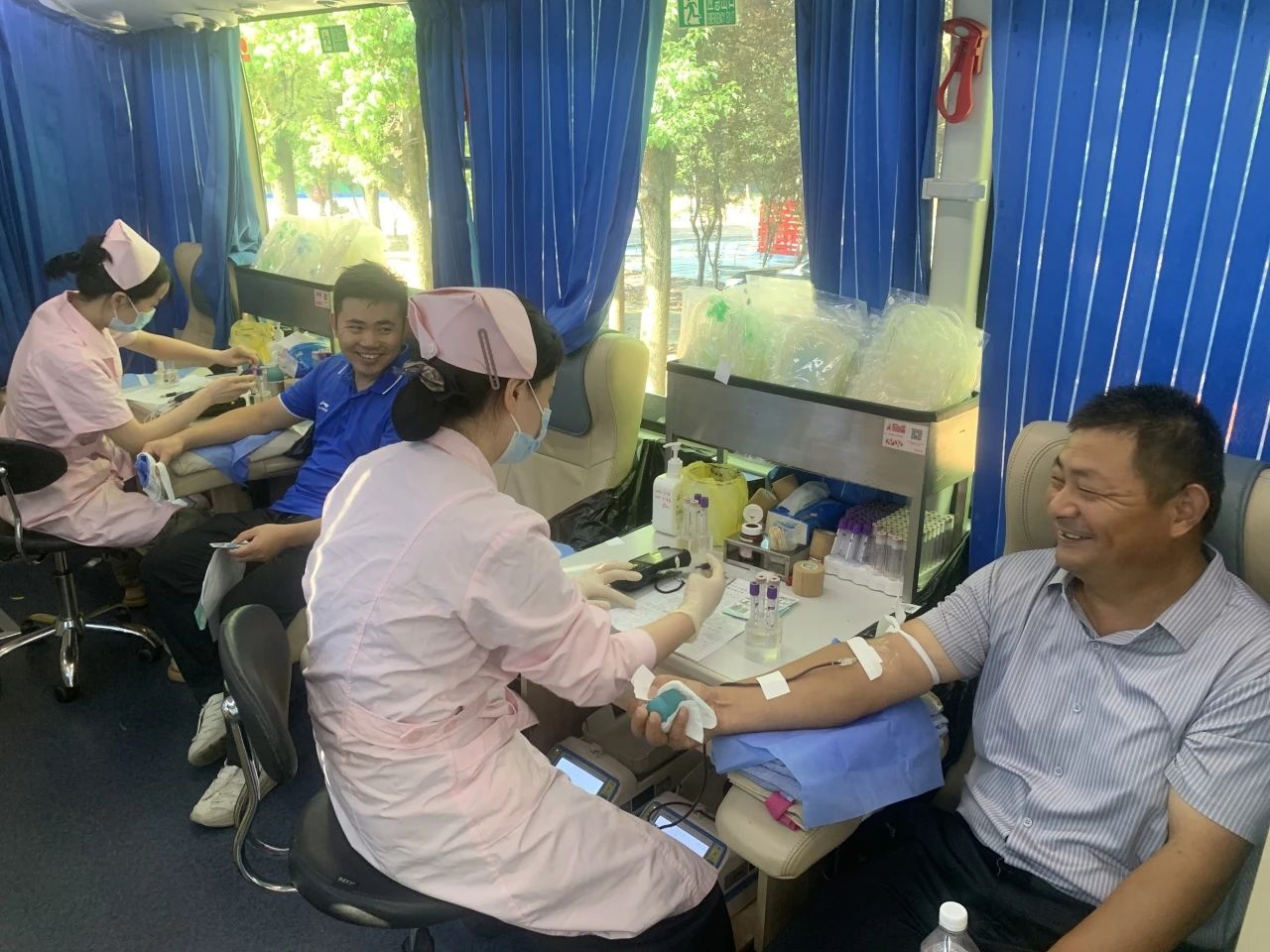 在献血队伍中,既有坚持献血多年的“老将”,也有初次上阵的“新兵”。大家怀着同样热诚的心,用实际行动传递爱心正能量。一位正在献血的大哥说:“每次开展献血活动我都来参加,在去年已经拿到《合肥市无偿献血荣誉证》,奉献爱心的同时还能享受很多政策,非常好!”