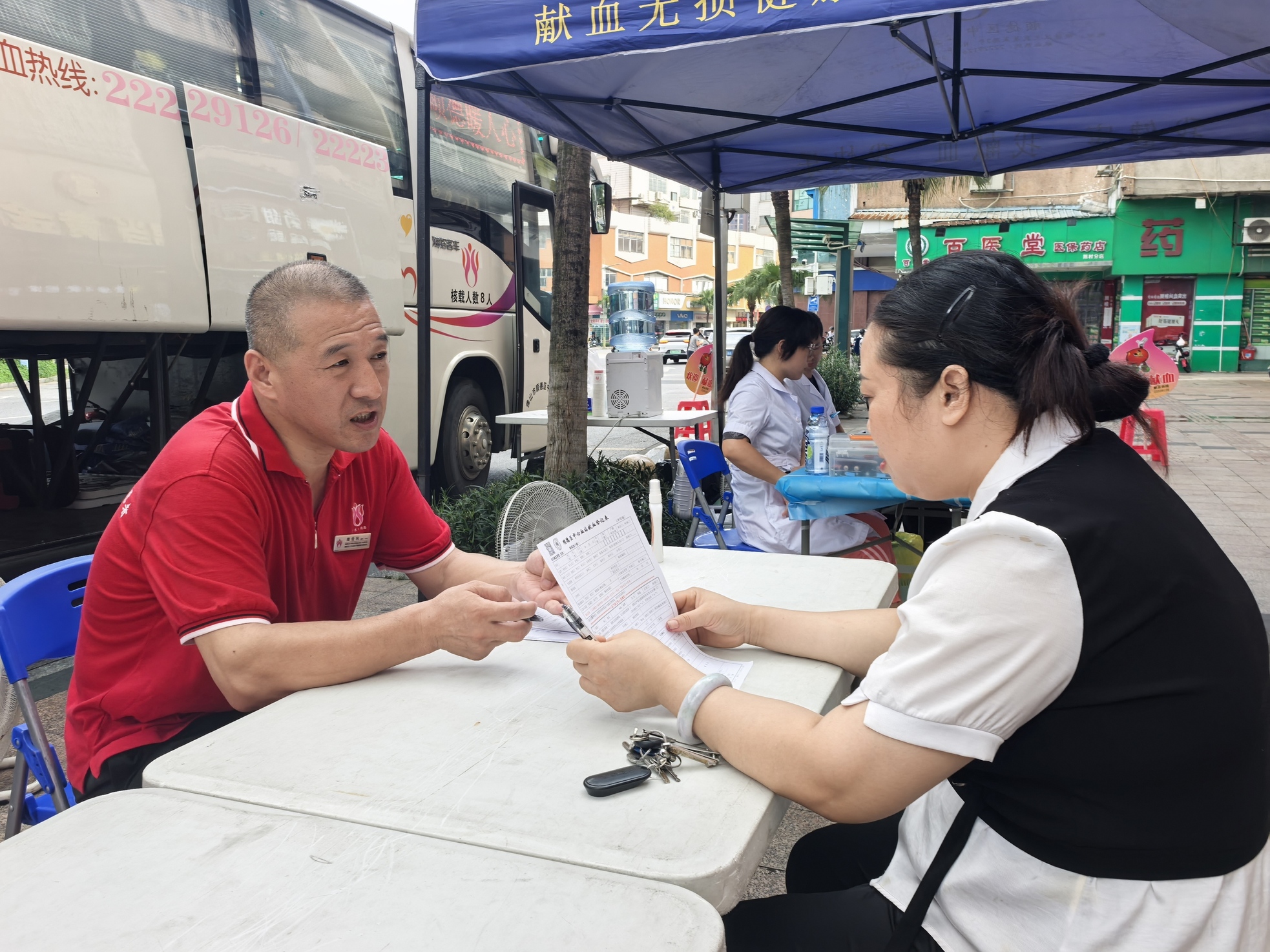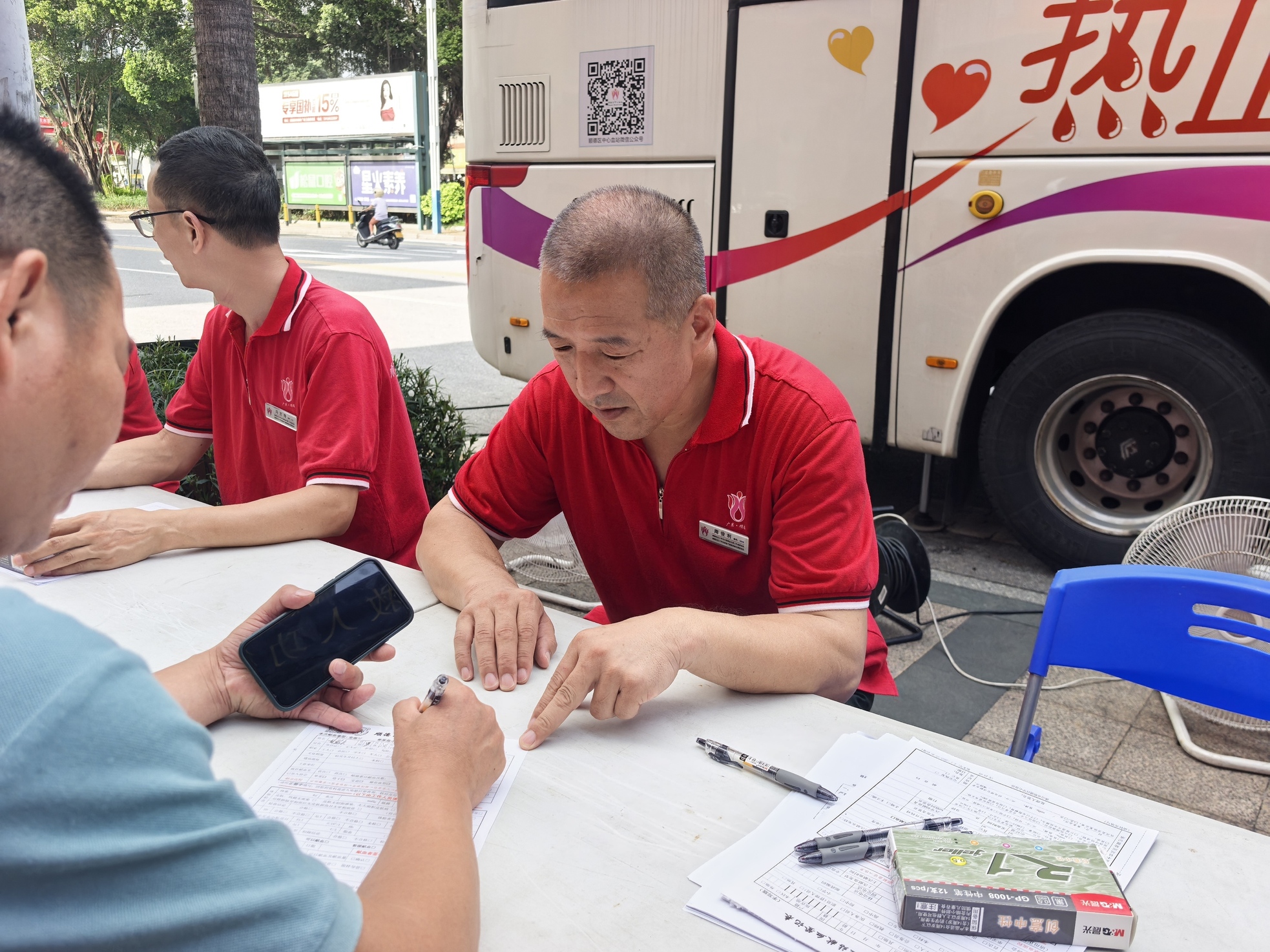 在献血点,他是无偿献血志愿者,引导献血者填表格,用自己的故事缓解献血者的紧张。“很多人怕献血,是因为不了解。我多讲一句,可能就多一个人愿意伸出臂膀。”