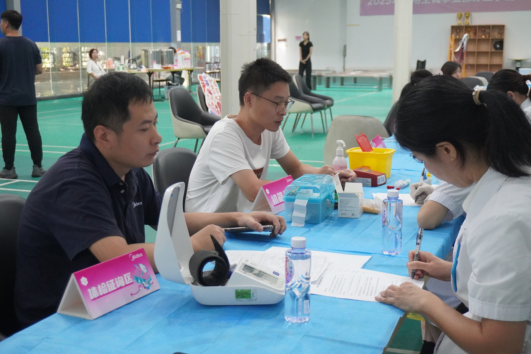 在献血过程中,血站工作人员耐心地为每一位献血的员工进行健康征询,提供热情而专业的献血服务。员工们有序地排队,脸上带着坚定的神情。整个献血过程就像是一场爱的接力赛,从美的集团的企业文化出发,传递到家用空调事业部,再到每一位员工心中。