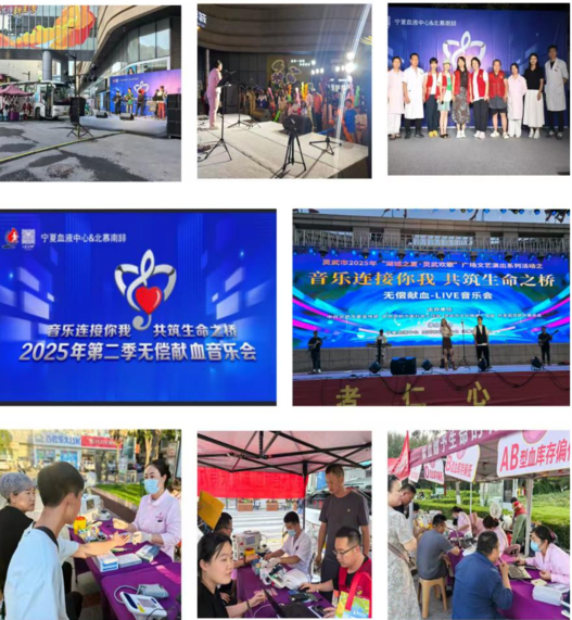 夏季以来,宁夏回族自治区血液中心先后在银川科技学院、银川市阅彩城、金凤万达、东方红广场、灵武市灵州广场、永宁县宁和广场、贺兰县欣兰广场等地举办“音乐连接你我 共筑生命之桥”无偿献血音乐会8场次。旨在通过音乐演出结合无偿献血公益宣传的形式,扩大无偿献血的社会知晓度,吸引公众无偿献血的参与度,增强对公益事业的认同感。