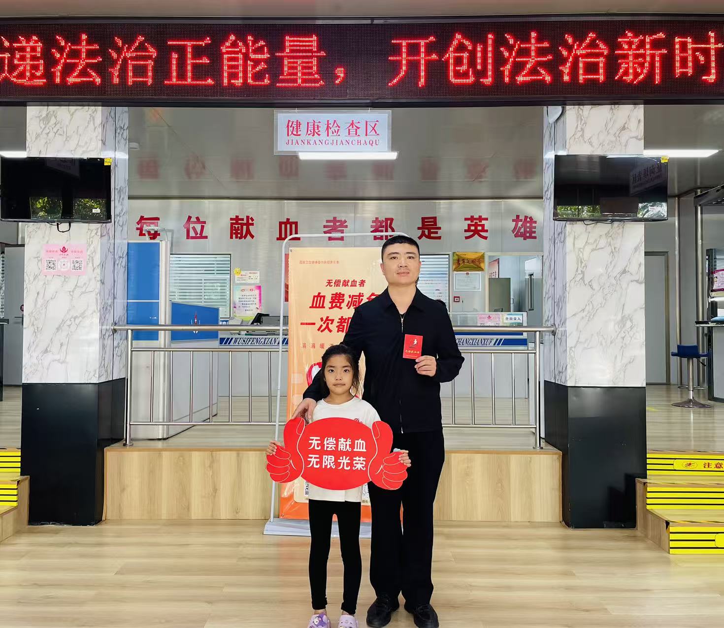 刘浩是一位经验丰富的无偿献血者,累计献血量已达6400毫升。这一天,他独自带着女儿来到献血屋。女儿虽然年纪小,但表现得非常懂事,安静地陪着爸爸完成献血流程。刘浩说:“我希望通过自己的行动,让女儿明白什么是奉献和责任。”