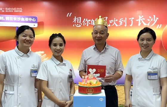 长沙血液中心为无偿献血奉献奖金奖获得者魏元泵庆生