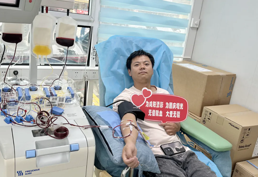 在第一次捐献全血后,胡聪聪踏上捐献机采血小板新征程,至今已经115次参加无偿献血,献血总量达到了45200毫升。青春热血,阳光向上,奉献精神值得弘扬。