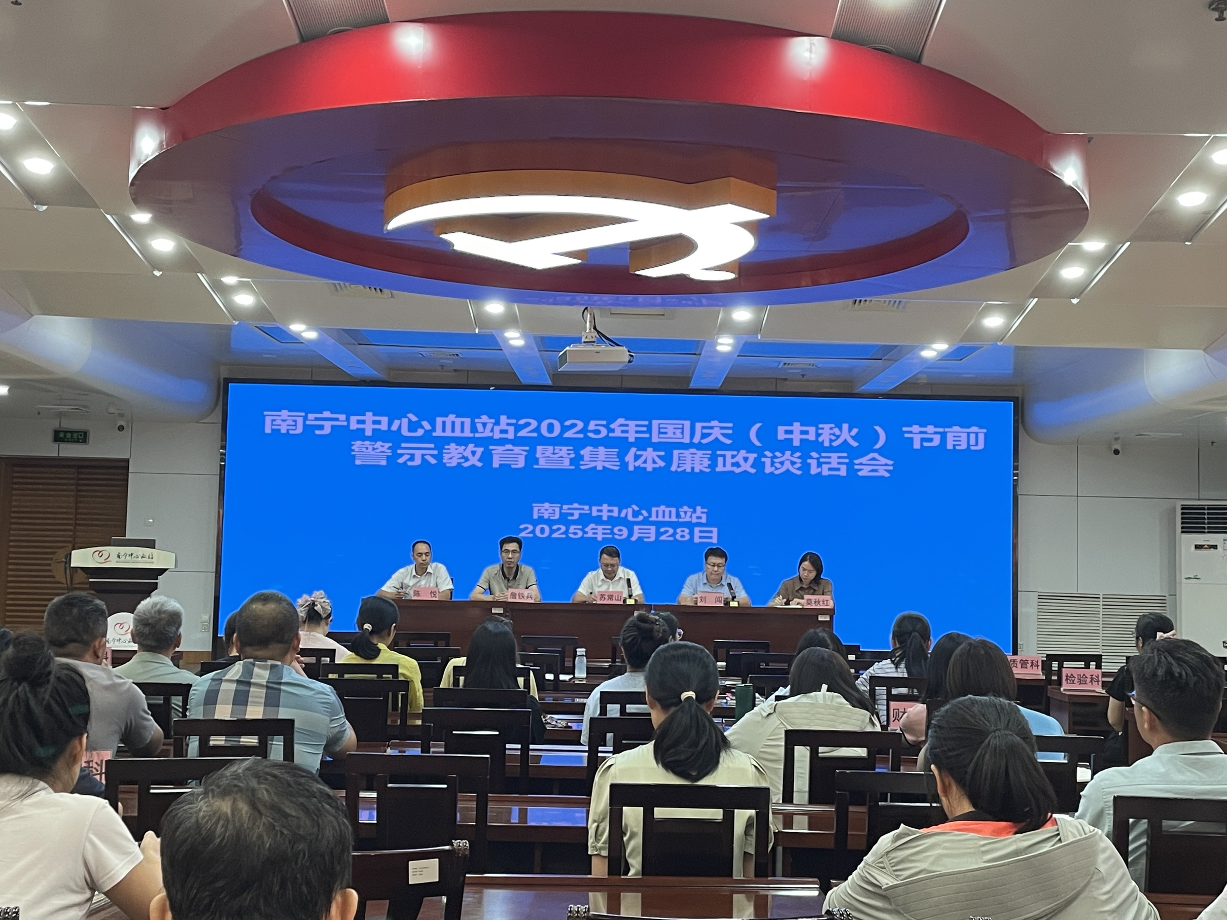 筑牢廉洁防线,守护血液安全——南宁中心血站开展2025年国庆(中秋)节前警示教育暨集体廉政谈话