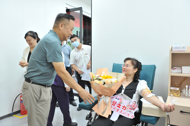 参加仪式的领导还亲切慰问了首批爱心献血者,并向他们献上鲜花,致以崇高的敬意和诚挚的感谢。