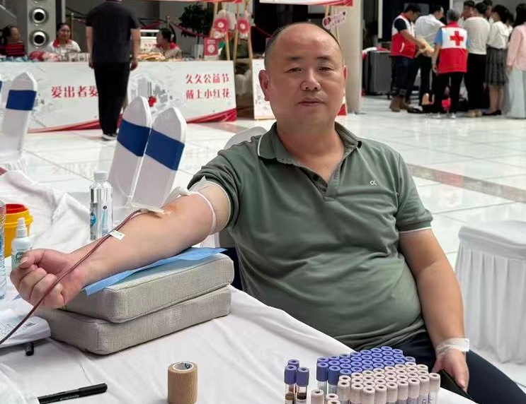 市宗教局干部孔繁群,这是他第十次参与献血,累计献血2000毫升。孔繁群的第一次献血可追溯到几年前的一个偶然机会,当时他在上下班的路上经过一处献血点更通过生动的信息和热情的工作人员传达了献血的科普。随后自己就走上车参与了献血活动,随后就一直坚持到现在,几乎每年自己都会参与献血活动。