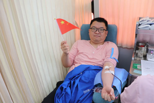 这是热血青年邢浩第10次参加无偿献血,他是AB型血,献血量达到4000毫升。大家纷纷为邢浩点赞,坦言宝石人的勇担责任热血奉献的企业文化得到传承。