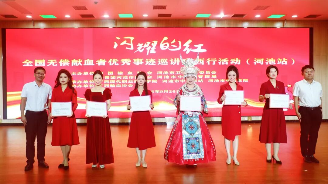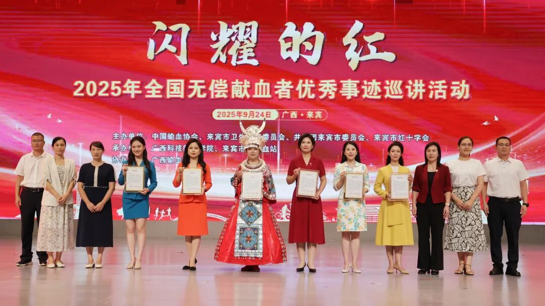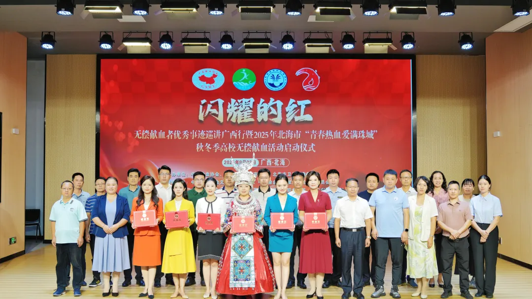 2025年9月23—26日,历时四天的2025“闪耀的红——无偿献血者优秀事迹巡讲广西行”系列活动(简称“闪耀的红”巡讲广西行)圆满收官。此系列活动由中国输血协会支持,北海市、来宾市、河池市卫生健康部门和行业管理部门指导主办;协会文化委、动员委、服务委,北海市中心血站、来宾市中心血站、河池市中心血站,以及活动地其他有关部门单位联合承办。“闪耀的红”巡讲团成员从广西北海出发,途径来宾市、河池市,分别在北海康养职业学院、广西科技师范学院、广西现代职业技术学院展开了三场演讲,每走过一处都得到了当地的大力支持。