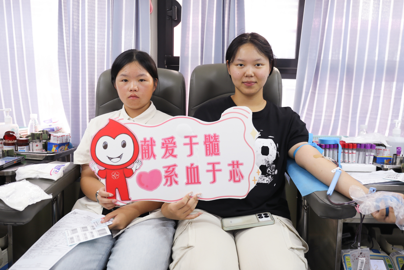 “我从没见过这么粗的针头,刚看到的时候还怪紧张的。”说起刚才的反应,这位初次献血的同学还有点不好意思,“后来才知道献血的针头这么粗,是为了防止红细胞因挤压破裂造成溶血,导致血液报废。想到我献的血能挽救一个生命,立马有了勇气。”