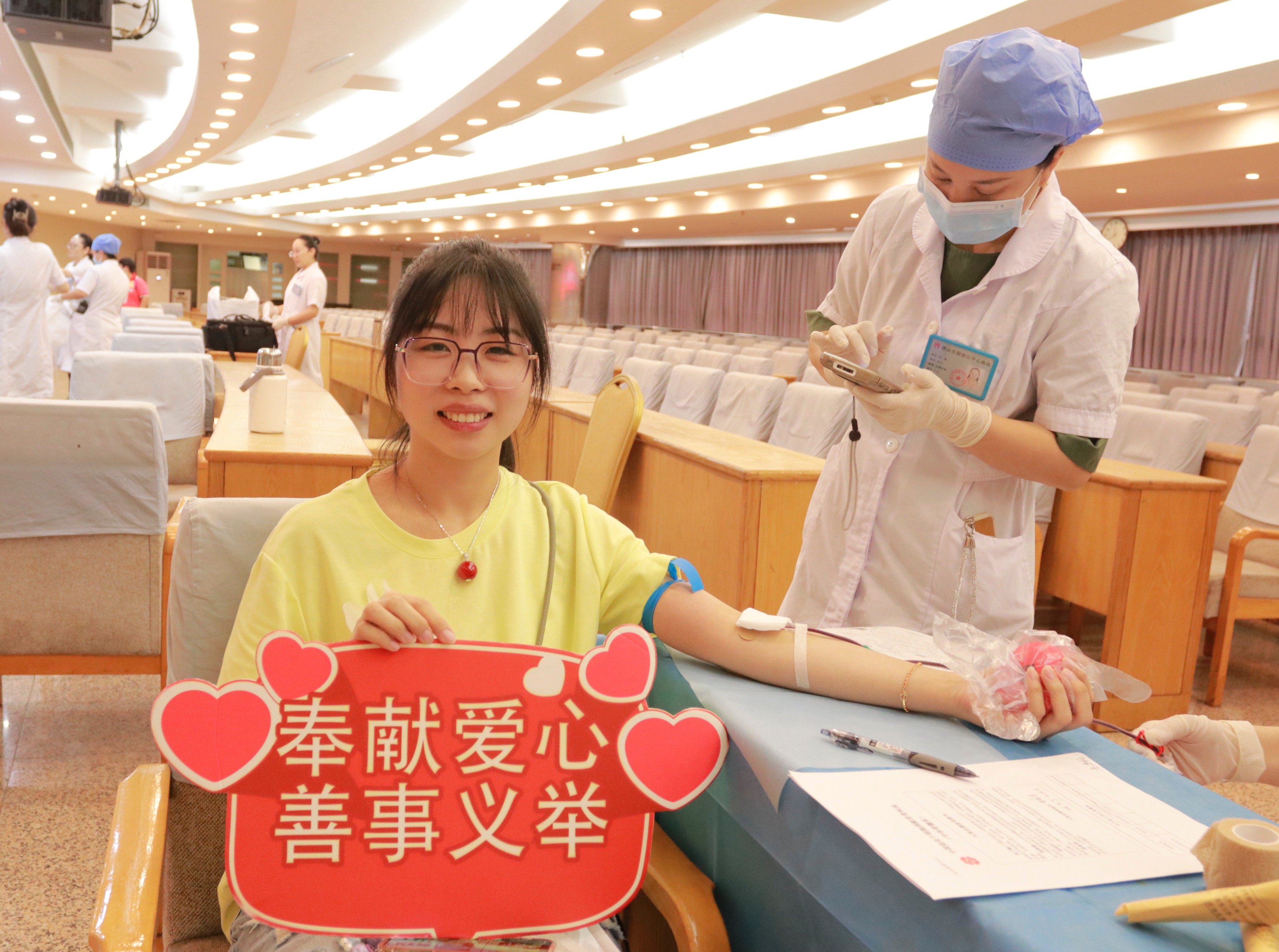 随着强台风逐渐远离,一场充满爱心的无偿献血活动在大良街道办事处会议中心举行,活动全程饱含温情与力量。