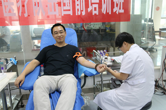 进入盛夏,南昌持续高温,省直医院临床用血较为紧张。得知消息的2019年中国(江西)援外医疗队主动与江西省血液中心联系,要求组织集体献血活动。2019年8月8日上午,学员来到江西省血液中心南区采血大厅,集体捋袖献血,贡献自己的一份力量。